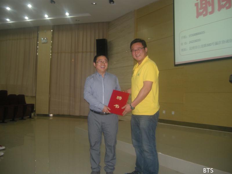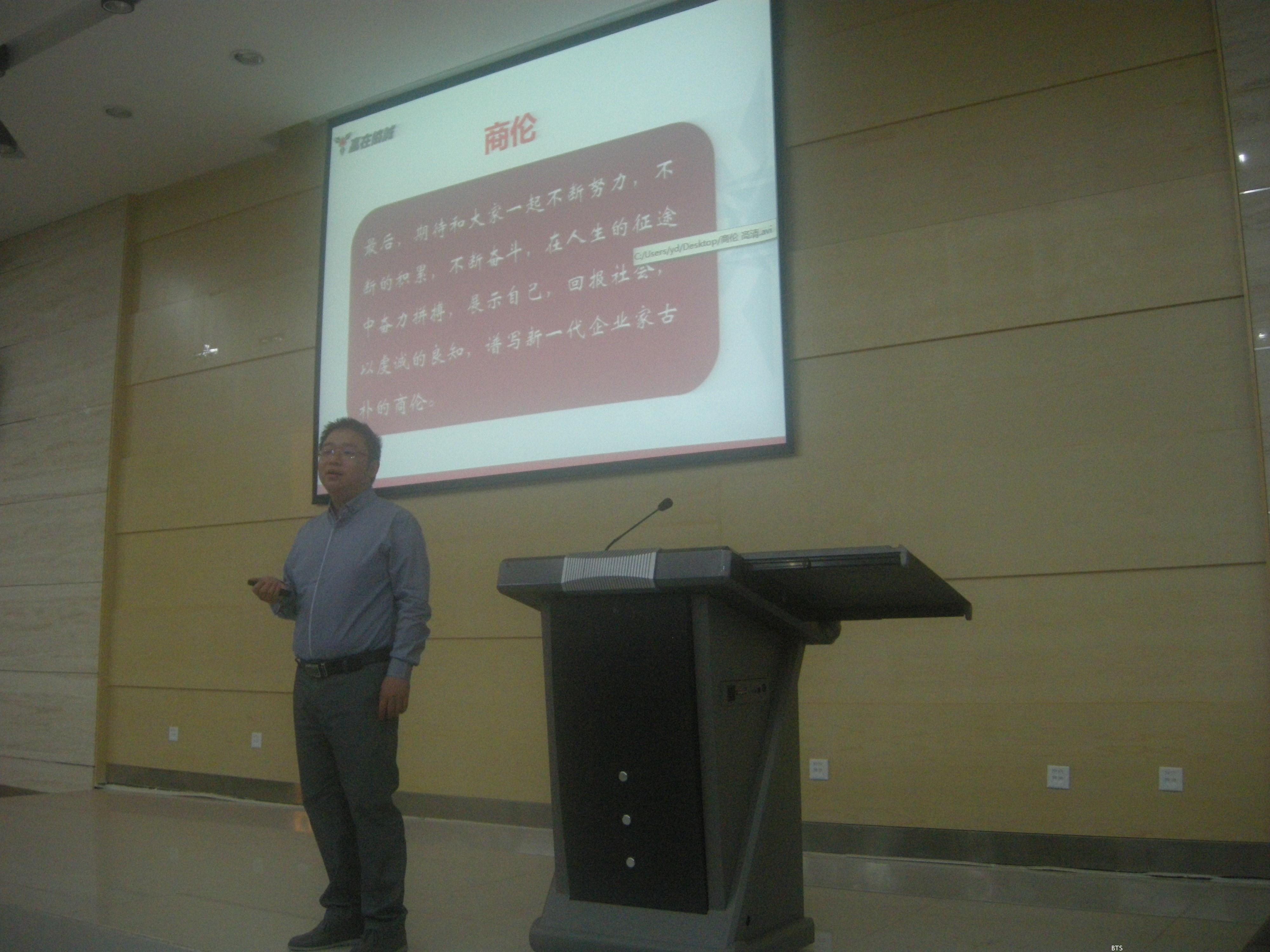 接着,贺靖先生给了我们大学生创业的十大建议,提问环节中,同学们积极提问,贺靖先生耐心讲解,受益匪浅。最后,以2011级辅导员为贺靖先生颁发商旅讲坛聘书结束了这次精彩的演讲。
