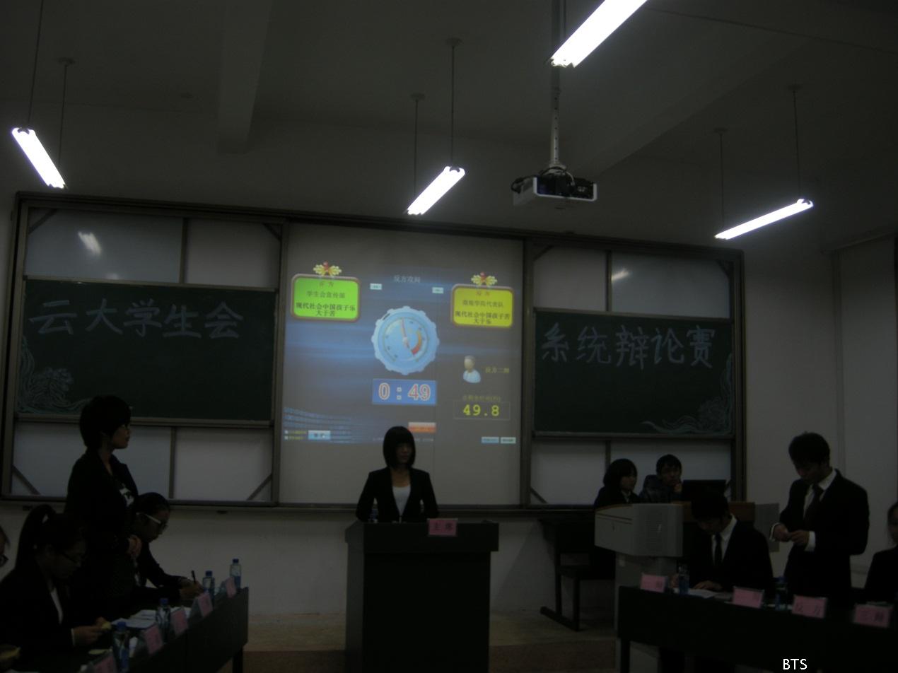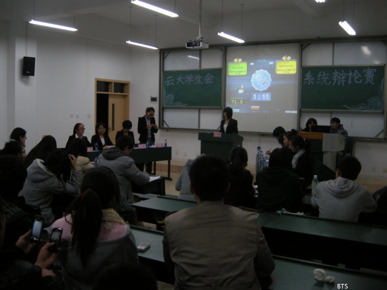 2012年12月5日晚,学生会系统辩论赛复赛在文汇楼开赛,此次辩论辩题为当代中国孩子是乐多于苦还是苦多于乐,对阵正反方分别是校学生会宣传部辩论队与商旅学院辩论队。