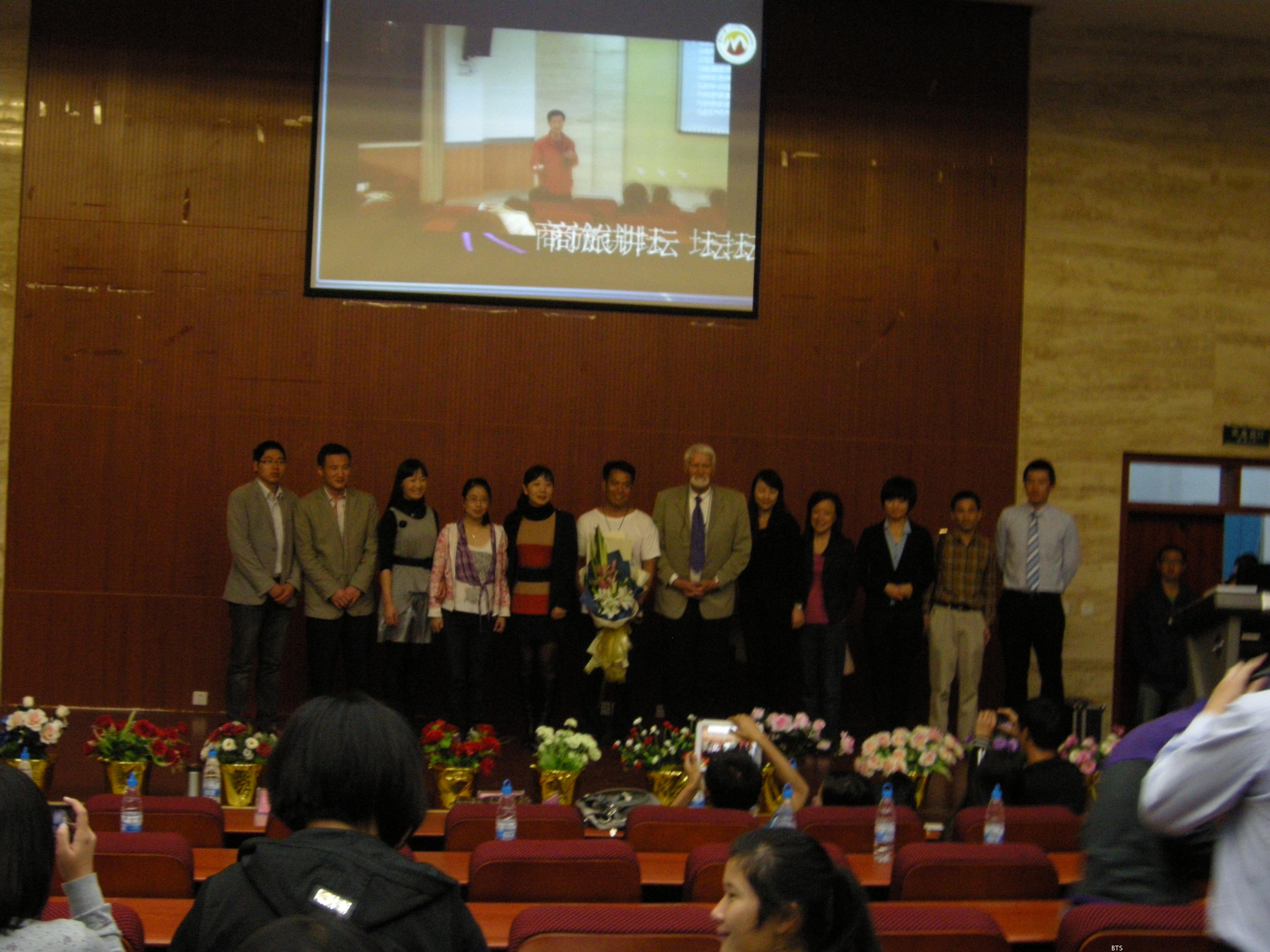 随后,黄林武先生为我们讲述了他在澳洲自驾摄影旅行时的很多趣事,让我们欣赏到了许多美景,同学们都听得津津有味。之后,黄林武先生又与同学们分享了他的生活经历和有趣的图片,视频,并给同学们旅行提供了宝贵建议,在场气氛相当活跃。最后,由意大利学者Dr.Corrado Politi发言,赞扬了云南美景,并鼓励同学们能多走出去,享受旅游的乐趣。
