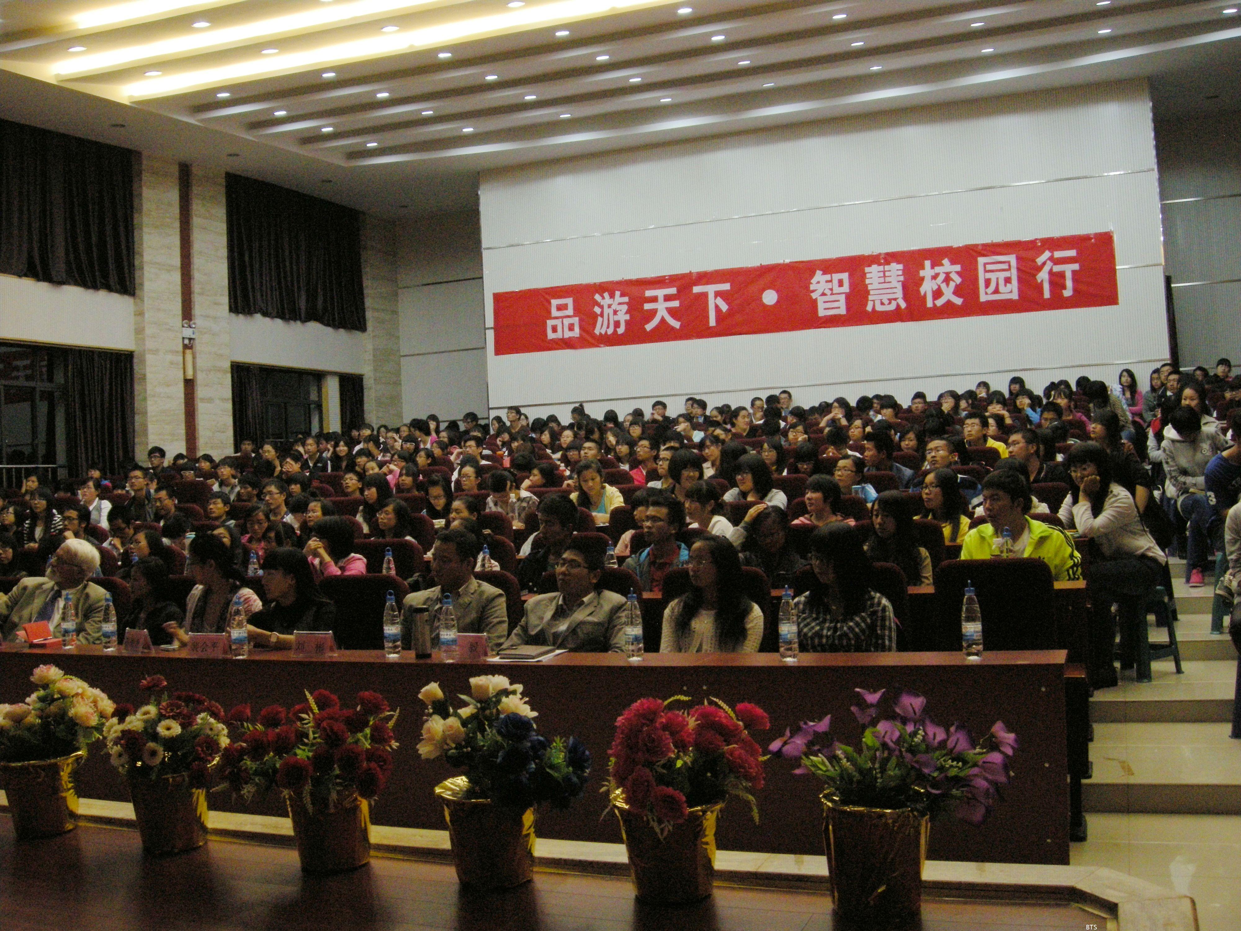2012年10月22日星期一晚7:00,在城建学院报告厅内,云南省旅游信息中心主任黄林武先生为我们带来了本学期第一期商旅讲坛《品游天下,“象”眼看世界》。现场挤满了三百多名观众,座无虚席。虽然拥挤,但这丝毫没有影响到同学们对此次讲座的热烈期盼。