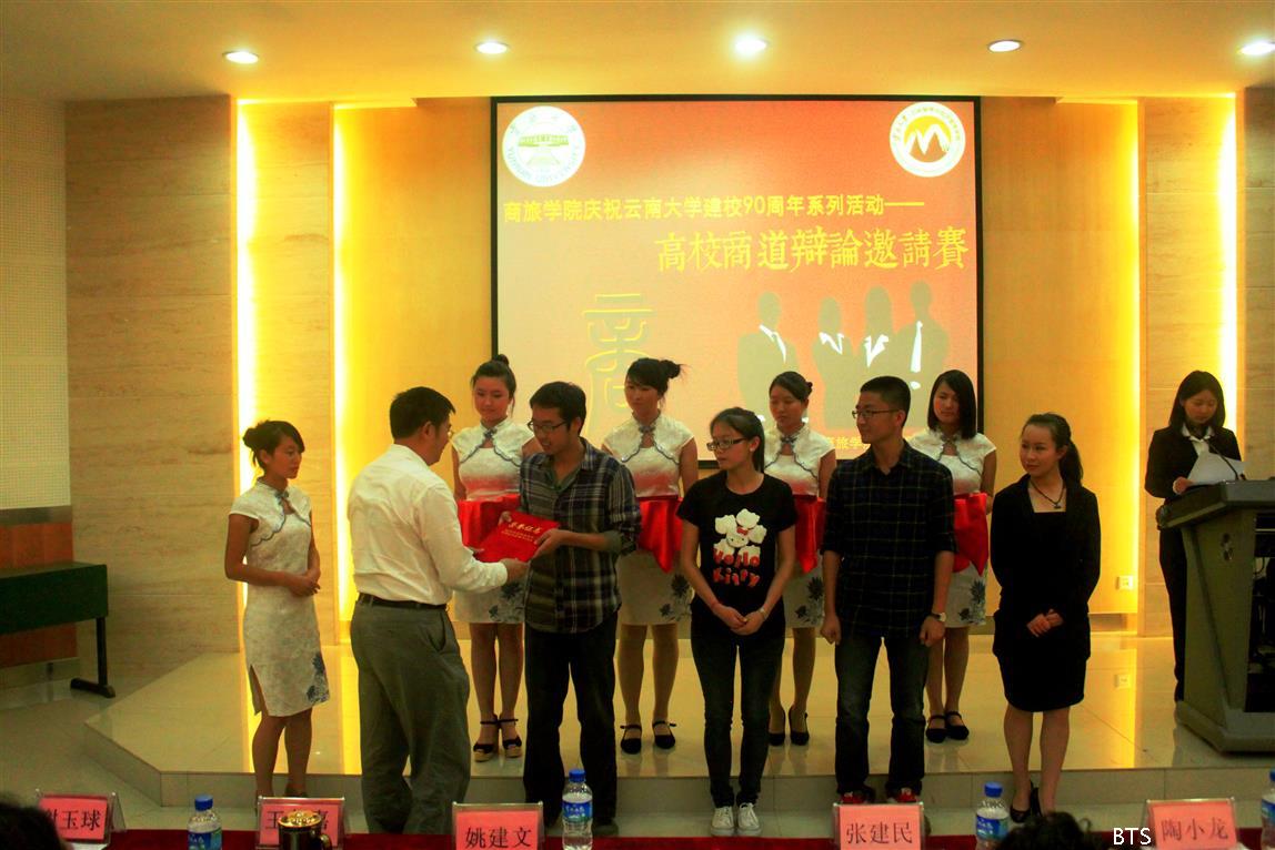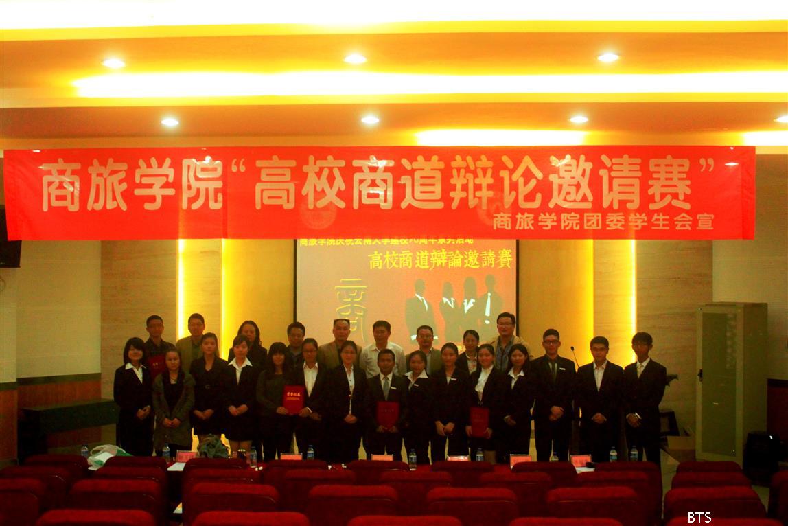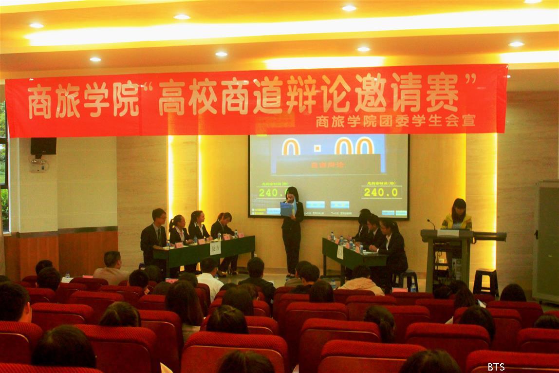 2013年5月10日,商旅学院校庆献礼系列活动之“第二届高校商道辩论邀请赛”的决赛在格物楼2101报告厅展开,本次比赛邀请了来自云南民族大学、云南师范大学的经管学院代表队、以及在云南大学校内辩论赛中脱颖而出的学院代表队共计七支队伍,在激烈的初赛过后,四支队伍强势晋级决赛。本次比赛的评委有商旅学院副院长姚建文老师,工商管理系副主任张健民老师,电子商务系王鲁嘉老师,院学生事务办主任谢玉球老师,商旅学院工商管理系陶小龙老师。到场的嘉宾还有院团委书记孙丽香老师和2011级辅导员刘彬老师,2012级辅导员王毅老师。一时间场内座无虚席,选手们蓄势待发。