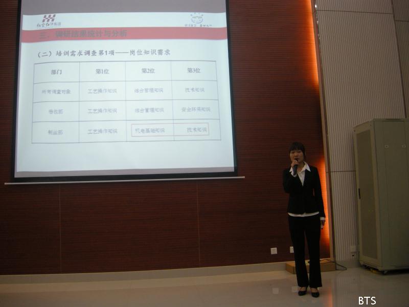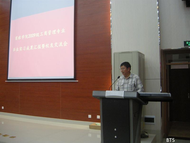 接下来由优秀实习代表张立代表2009级工商管理专业同学做了本次实习的总结发言,同样是非常精彩,对实习中的讲解更是震撼全场。