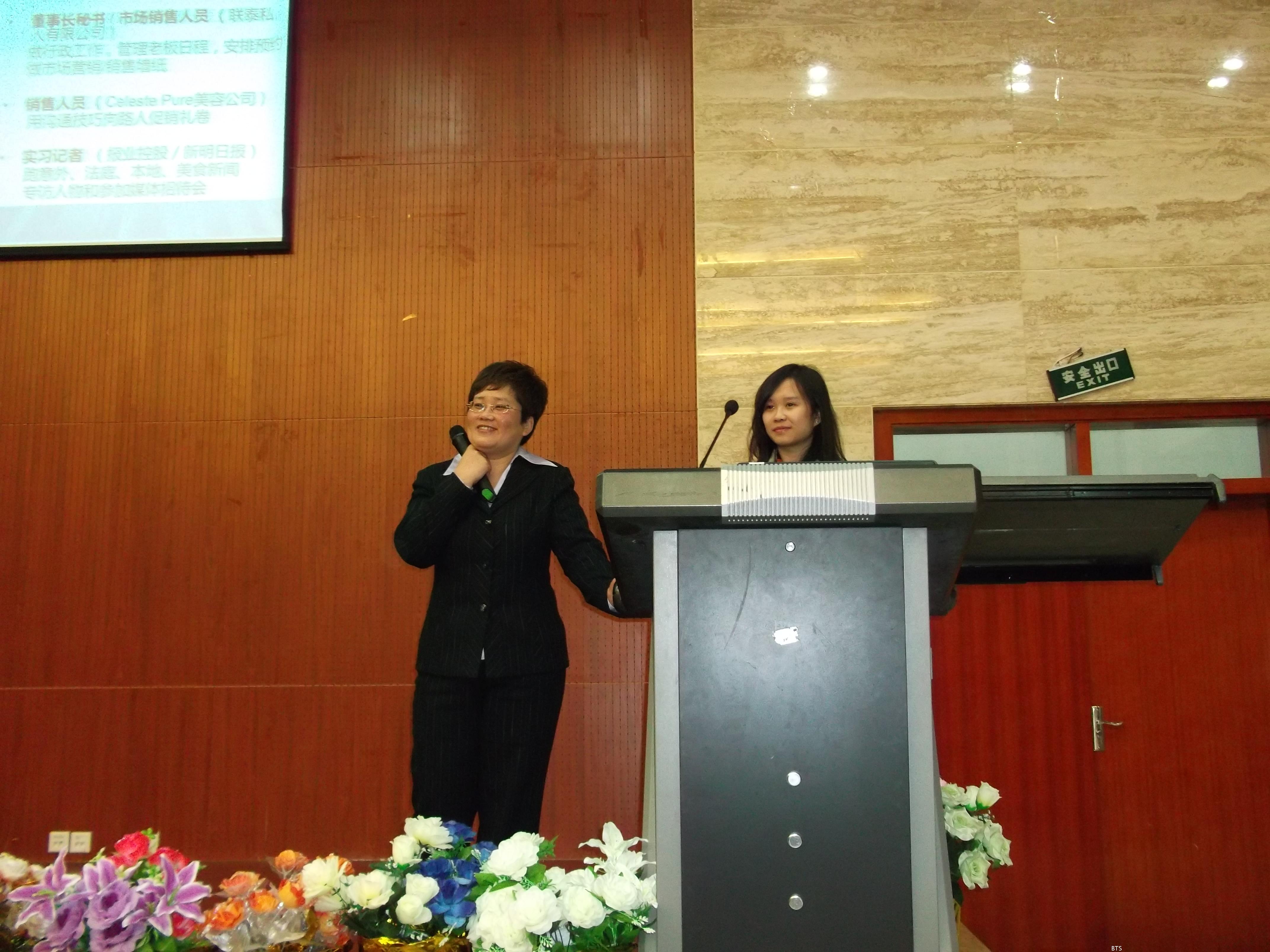 文雅鑫女士毕业于云南大学84级中文系本科专业,一上台,文女士就用易懂的语言为我们阐述了她大学毕业后的工作经历,在她幽默诙谐的话语中,不仅展现了她在面对坎坷求职路时坚强的意志和果断的决心以及善于抓住各种机会的能力,而且更重要的是,在场的同学们在她的经历中学会了一个重要的品质:敢于放弃,敢于尝试。