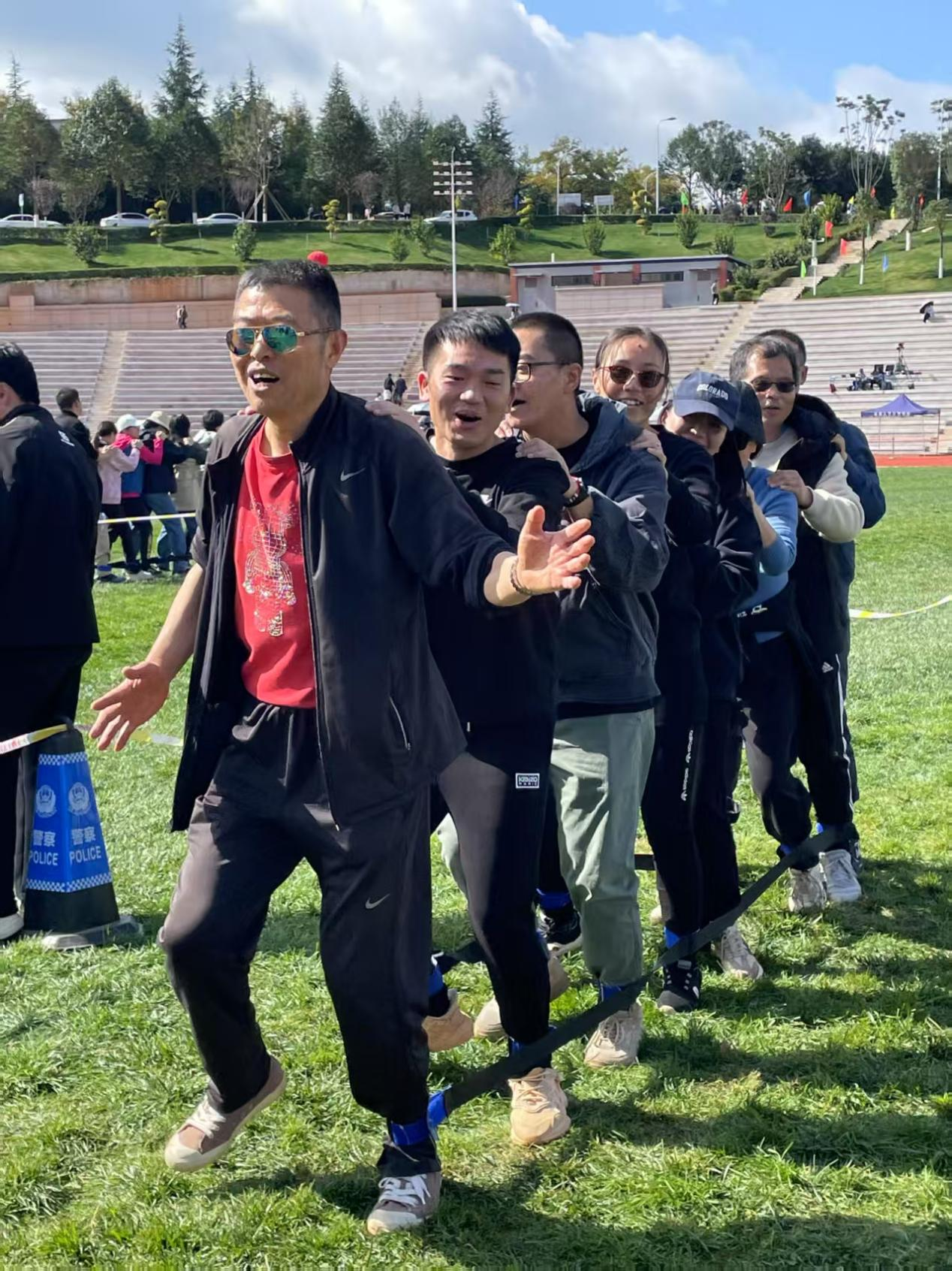 商旅学院教职工积极参加2024年体育节趣味运动会 发表时间:2024-11-23 编辑:张鹏杨 作者: 分享: 2024年11月21日(周四)早上9点左右,在云南大学呈贡校区东门体育公园田径场,在院党委副书记何曼榕的带领和院工会的组织下,我院报名参加趣味运动会的教职工来到运动场参加体育节趣味运动会。 参加趣味运动会的老师们以饱满的热情参与到极兔赛跑、鸿运彩球、巨人的脚步、滚铁环、沙包掷准、跳长绳、同心鼓等项目活动中。 下午,我院教职工杨立珊、王娟、陈华明、郑喆参加了消防运动会。 院工会主席仇学琴、工会委员蒋峻松等到运动场服务。 一审:仇学琴 二审:张鹏杨 三审:何曼榕 上一篇:工商管理与旅游管理学院女教职工外出庆祝 2025年“三八”国际节 下一篇:学院教职工积极参加2023年体育节趣味运动会