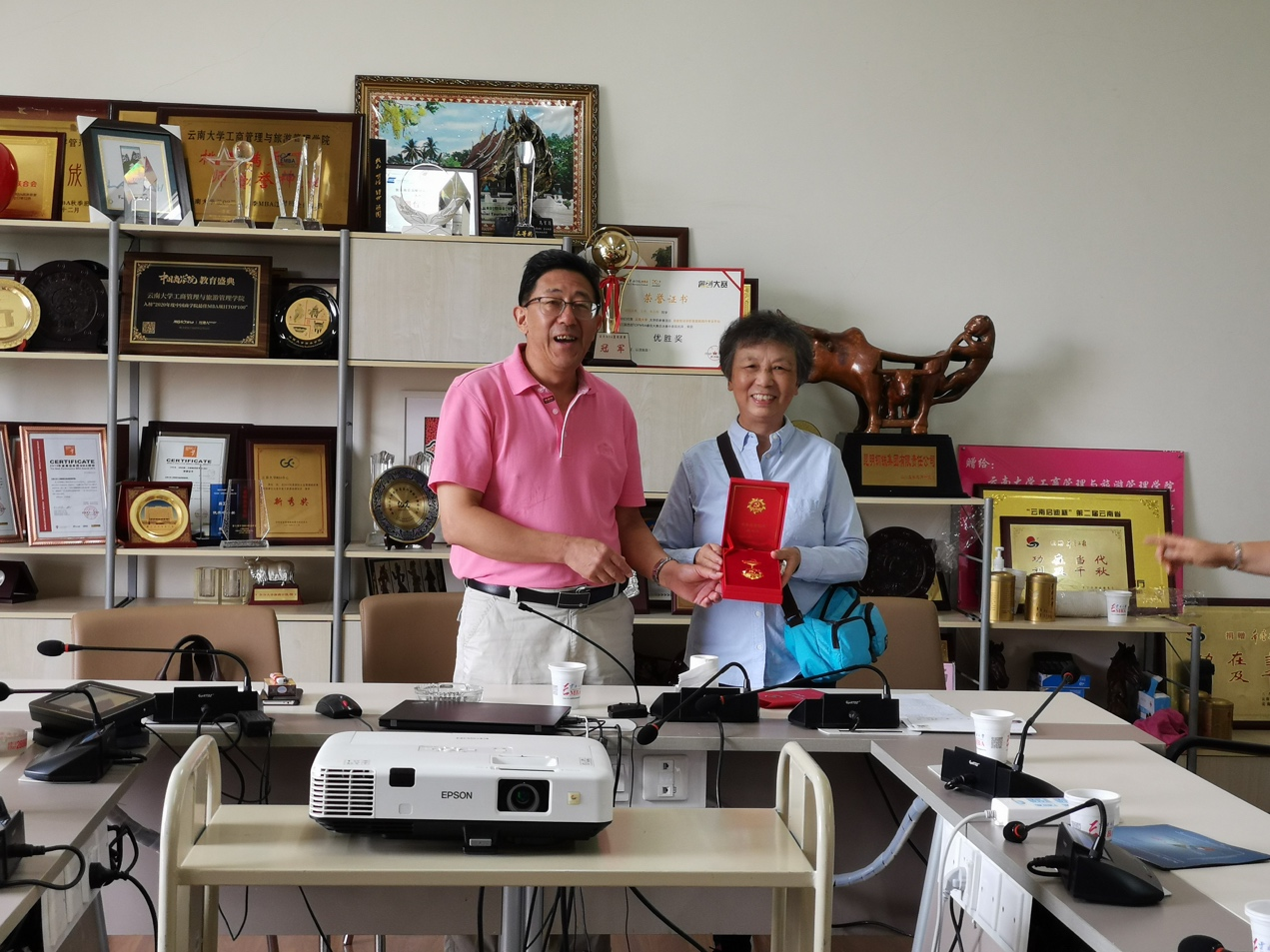 按照校党委组织部的要求,张建良同志代表院党委宣读了向尹燕萍同志颁发“光荣在党50周年”纪念章的决定,并现场颁发纪念章。张建良书记对尹老师获颁纪念章表示祝贺,感谢尹老师多年来对学院党建工作的关心和支持。尹燕萍同志表示,感谢党、感谢学校对退休党员的关怀,愿继续为学院和学校的发展尽自己的绵薄之力。