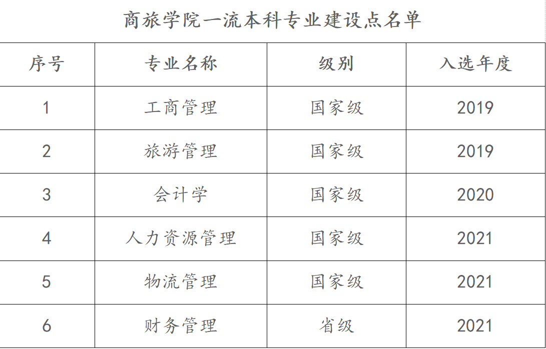 近日,教育部办公厅发布了《关于公布2021年度国家级和省级一流本科专业建设点名单的通知》(教高厅函〔2022〕14号),学院人力资源管理专业和物流管理专业入选第三批国家级一流本科专业建设点,财务管理专业入选省级一流本科专业建设点。这是继2019年工商管理专业和旅游管理专业获得国家级首批一流本科专业建设点,2020年会计学专业入选第二批国家级一流本科专业建设点后,我院本科专业建设的新突破。至此,学院拥有5个国家级一流本科专业建设点和1个省级一流本科专业建设点,实现了国家级和省级一流专业建设点的全覆盖,旅游管理专业还获批云南省首批新兴专业,标志着学院的人才培养工作上了新台阶,落实“以本为本”理念取得了新成效。