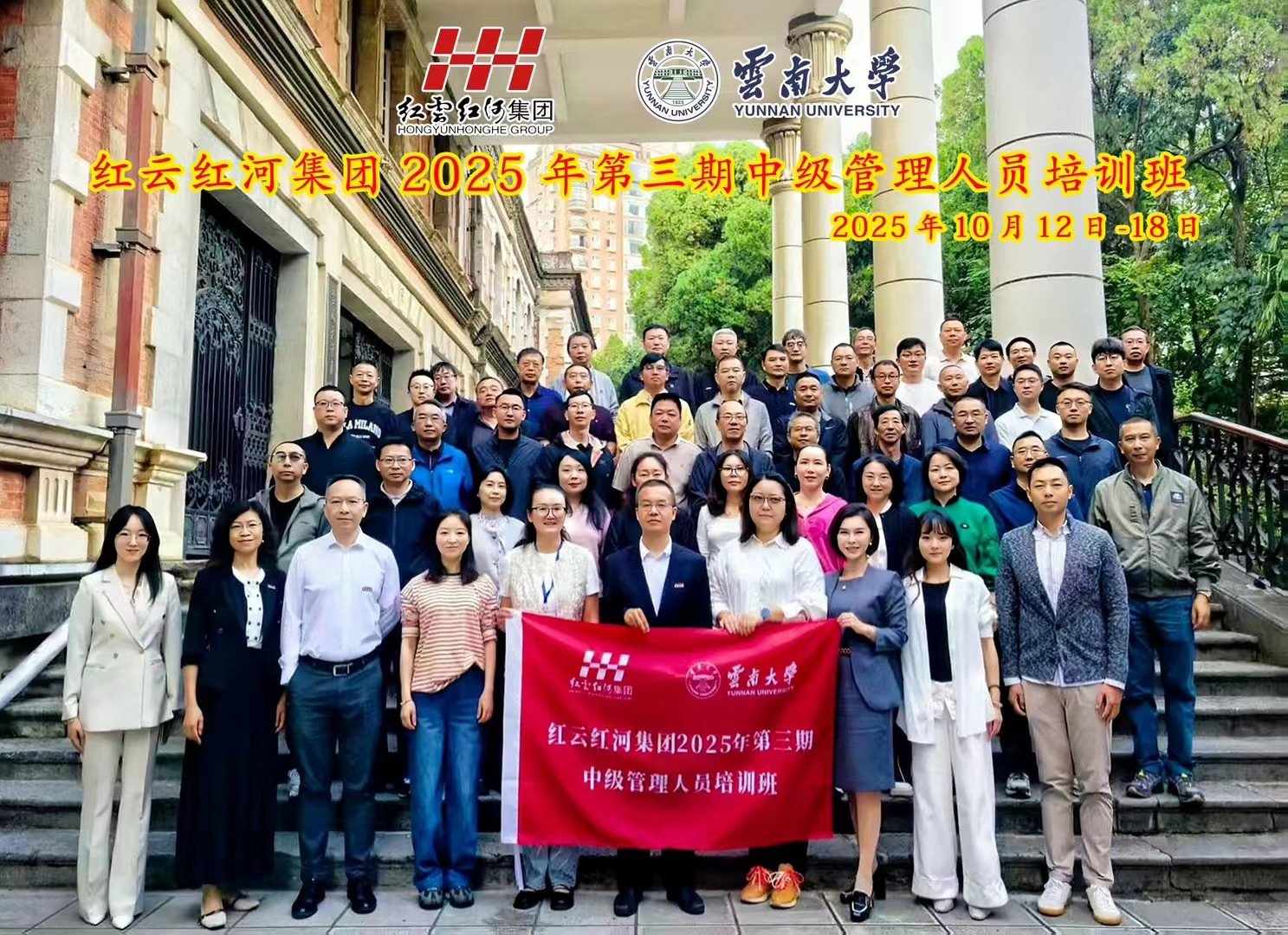 2025年10月12日至17日,由红云红河集团、云南庆来技工学校组织的“红云红河集团2025年第三期中级管理人员培训班”在云南大学工商管理与旅游管理学院(滇商学院)顺利举行,来自红云红河集团各业务板块的50名中级管理人员参加培训。商旅学院副院长王克岭、红云红河集团人力资源部培训开发科科长王晓玲出席开班仪式并致辞,学院培训中心相关工作人员参加开班仪式。