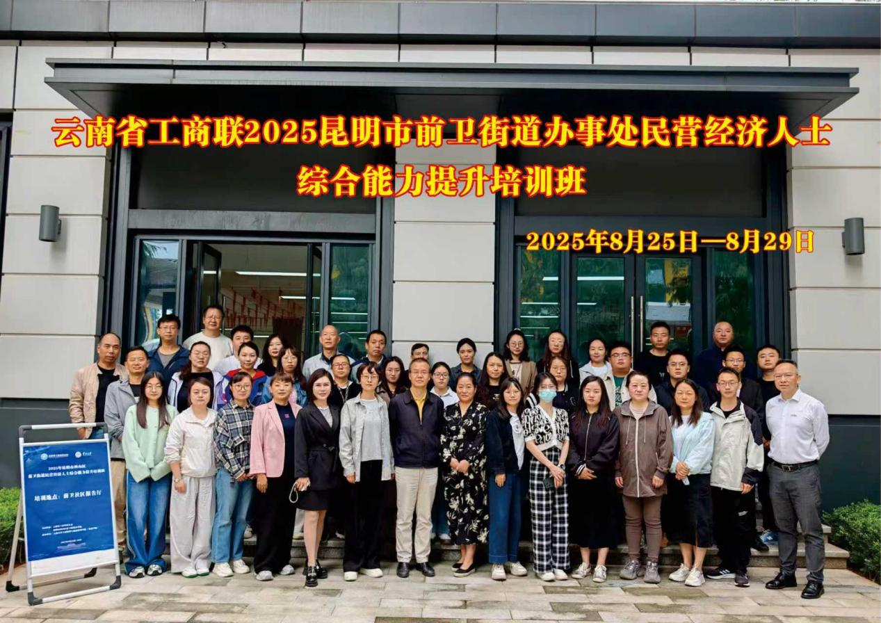 2025年8月25日至28日,由云南省工商联、昆明市西山区前卫街道办事处组织,云南大学工商管理与旅游管理学院(滇商学院)承办的“2025年昆明市前卫街道民营经济人士综合能力提升培训班”顺利举行,来自昆明市前卫街道的民营经济人士50人参加培训。商旅学院副院长、滇商学院执行院长王克岭、云南省工商业联合会机关党委(非公党建办)三级调研员马莉、昆明市西山区前卫街道区域发展中心主任拔旭出席开班仪式并致辞,学院培训中心相关工作人员参加开班仪式。